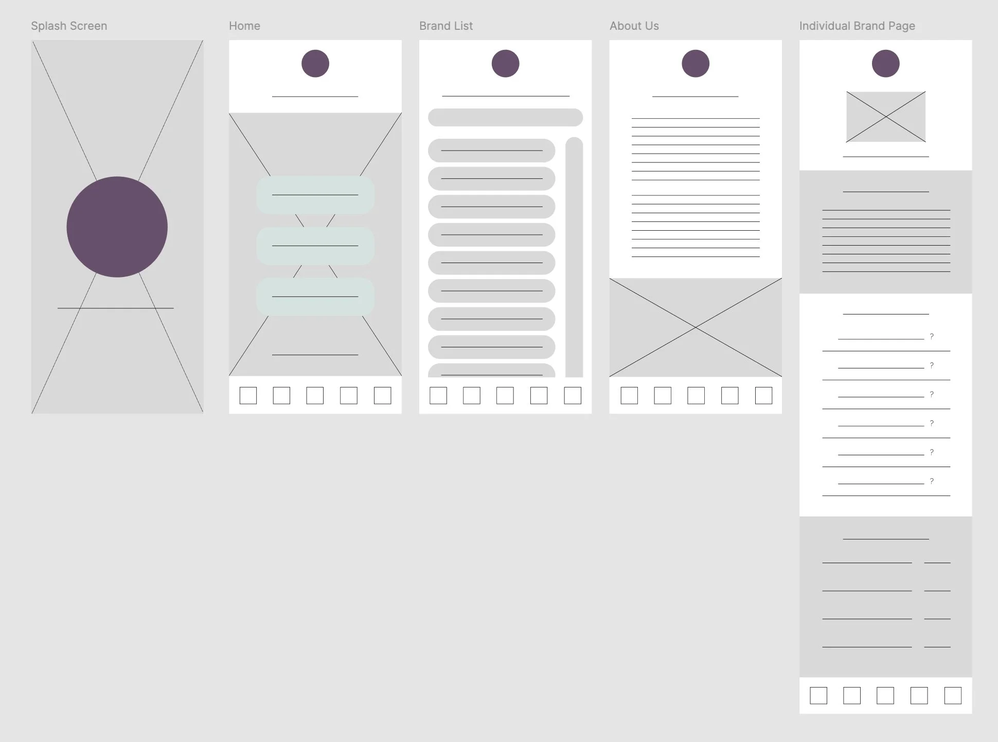 From there I started building out the actual app prototype. As I refined the design, I introduced new features like the ability to favorite brands for easy access in the future, and submit a new brand for verification. I felt that these features would make for a more well-rounded user experience. I utilized many components, variants, and interactions to make the app come to life.